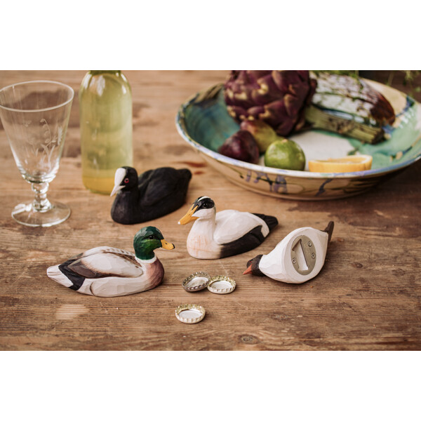 Lekfull design och hög kvalitet möter unikt hantverk i dessa tidlösa handsnidade kapsylöppnare. Kapsylöppnare i trä känns behaglig i handen vid användning. Och livar upp både hemma i köket eller som en rolig gå bort-present. Själva öppnaren i metall är infälld på undersidan och syns inte då kapsylöppnare ligger på bordet.