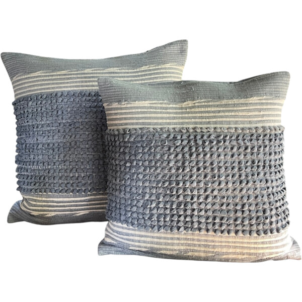 Lägg till en touch av avslappnad stil och unik textur i ditt hem med vårt charmiga, handgjorda kuddfodral från Thailand. Med ett härligt denimrandigt mönster ger detta fodral en avslappnad men ändå elegant känsla och mysig komfort till vilken soffa, fåtölj eller säng som helst. Finns i 2 storlekar. Storlek: 40 x 40 cm Material: 100% handvävd bomull. Design: Stiligt denimrandigt mönster med en texturerad, handgjord känsla. Handgjord Kvalitet: Varje fodral är unikt utformat och visar äkta hantverksskicklighet och subtila variationer som bidrar till dess karaktär. Mångsidig Dekor: Perfekt för moderna, kustnära, lantliga eller eklektiska interiörer.