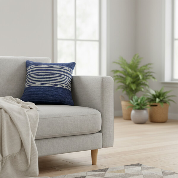 Design: Distinkt indigofärg med detaljerade flätade ränder för ett rikt, texturerat utseende. Handgjord Kvalitet: Varje fodral är omsorgsfullt tillverkat och visar upp unika variationer och genuin hantverksskicklighet, vilket garanterar att ditt exemplar är verkligen unikt. Mångsidig Inredning: Perfekt för bohemiska, kustnära, rustika eller moderna interiörer och förbättrar enkelt ditt hems estetik.