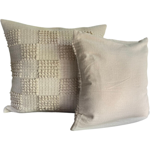 Lägg till rik textur till ditt hem med vårt vackra handgjorda kuddfodral från Thailand. Med ett elegant elfenbensfärgat rutmönster ger detta fodral en förfinad, mysig och inbjudande känsla till vilken soffa, fåtölj eller säng som helst. Finns i 2 storlekar. Storlek: 40 x 40 cm Material: 100% handvävd bomull. Design: Klassiskt elfenbensfärgat rutmönster med en distinkt strukturerad väv, vilket erbjuder en tidlös och mångsidig estetik. Handgjord Kvalitet: Varje fodral är noggrant tillverkat och visar upp genuin hantverksskicklighet och subtila variationer som gör varje stycke unikt. Mångsidig Dekor: Idealisk för minimalistiska, skandinaviska, moderna eller traditionella interiörer, och förbättrar ditt hem med diskret elegans.