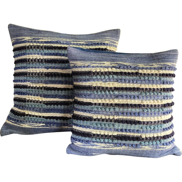 Ta med havets lugnande essens in i ditt hem med vårt vackra handgjorda kuddfodral från Thailand. Med lugna blå och vita toner samt ett rikt, texturerat oceanvävsmönster, tillför detta fodral kustcharm och mysig komfort till alla vardagsrum. Finns i 2 storlekar. Storlek: 40 x 40 cm Material: 100% Handvävd Bomull. Design: Lugnande blå och vit palett med ett intrikat, texturerat oceanvävsmönster som framkallar en fridfull kustkänsla. Handgjord Kvalitet: Varje fodral är noggrant tillverkat och visar upp genuin hantverksskicklighet och subtila variationer som gör ditt stycke verkligen unikt. Mångsidig Dekor: Perfekt för kustnära, bohemiska, moderna eller till och med minimalistiska interiörer, och förhöjer enkelt din inredning.