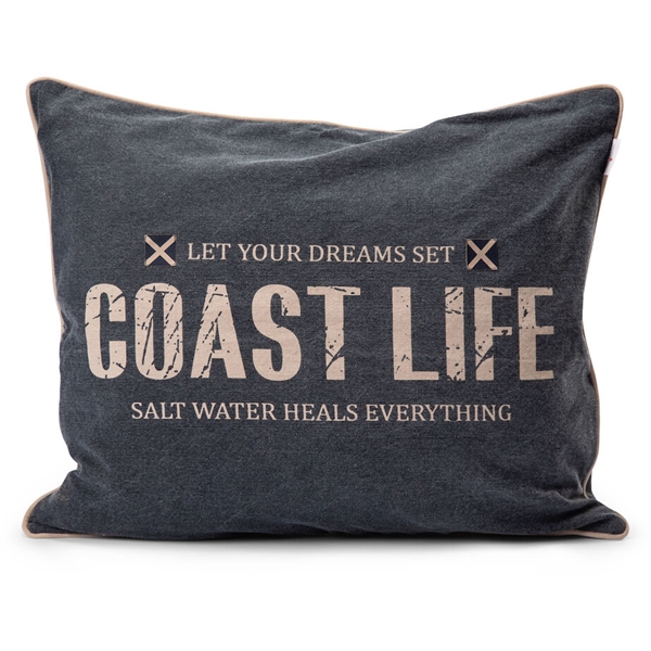 Kuddfodral Engesberg från Lord Nelson i maritima färger med stort märke på ovansidan " Let your dreams set, coast life. Salt water heals everything". Stort och snyggt kuddfodral som passar till att höja den maritima inredningen.