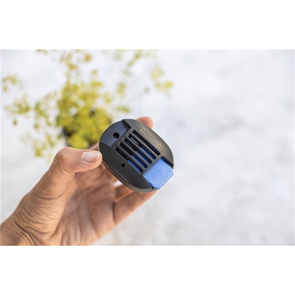 Utsöndrar ett luktfritt myggmedel som skapar en skyddszon på ca 10-15m² (98% skydd)