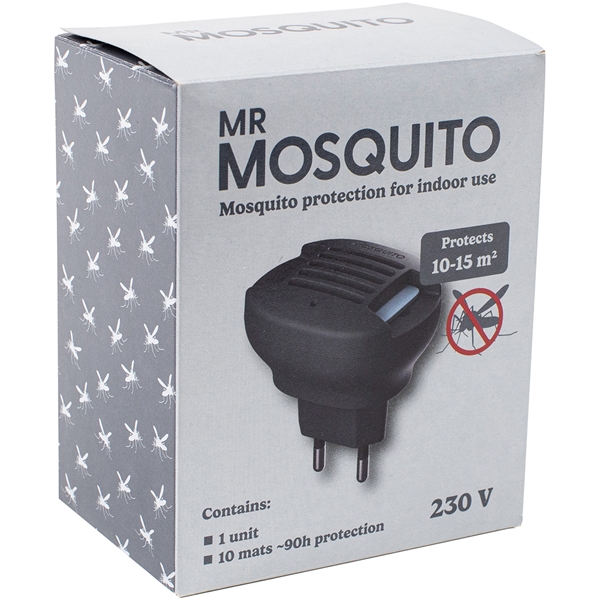 Inga mygg inomhus med Mr Mosquito! Mr Mosquito skyddar dig inomhus mot myggplågan med detta myggskydd. Sätt myggskyddet i ett strömuttag i sovrummet och sov sedan lugnt och skönt hela natten utan surr. 1 tablett räcker hela natten, mellan 8-10 timmar.