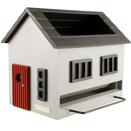 Design: Wildlife GardenHär får du en kombinerad fågelmatare med fågelbad. De torra fågelfröna gör att fåglarna även behöver få i sig vätska och vatten både under sommar och vinter. Ett fågelbad i närheten gör att de får tillgången på vatten tillgodosedd och du kan njuta av mer fågelliv i trädgården. För att fylla på frön lyfts taket av, i taket finns även behållaren för vatten. Taket är i tålig polypropylen-plast som tål frost. Det går bra att mata fåglarna året runt men om man vill kan man använda produkten enbart som fågelbad under sommarhalvåret.