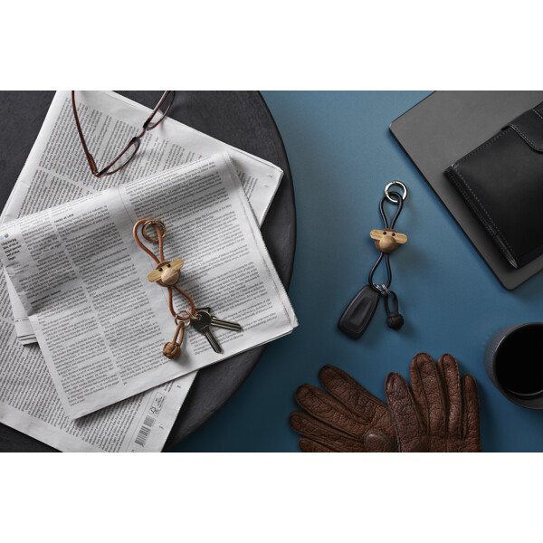 Ta med dig Kay Bojesens älskade klassiker och din kärlek till original dansk design överallt. På väskan. På bältet. Eller med bilnycklarna. Denna Kay Bojesen-nyckelring har apans karakteristiska huvud, tillverkat i den välkända kompositionen av vackert oljad FSC®-certifierad teak och kontrollerad limba, och kompletteras med en elegant och praktisk naturfärgad snodd i äkta läder. Snodden kan justeras upp och ner i förhållande till figuren, så att du kan skapa ditt helt egna uttryck. Överst sitter en stor guldfärgad nyckelring graverad med Kay Bojesen Denmark, som både fungerar som en stilren detalj och en praktisk funktion med sin smarta karbinhake för enkel öppning och stängning. Under figuren hänger tre extra nyckelringar, så att du har gott om plats för alla dina nycklar. Med en stilren och dekorativ nyckelring från Kay Bojesen Denmark kan du enkelt ge vardagen en personlig touch och ta med original dansk design vart du än går – oavsett om du väljer denna version med den legendariska apan eller den klassiska sångfågeln som din alltid trogna följeslagare. Kay Bojesen var en mästare på att tillföra små detaljer till sina träfigurer. Han fann magin i naturens eget material, och med sin enastående talang för formgivning tog den ena lekfulla figuren efter den andra form i hans fantasi och blev levande i hans händer. Två av hans största klassiker är utan tvekan apan och sångfågeln. Och även om apan i denna nyckelringsversion har skalats ner till endast 3 cm i höjd, bär den fortfarande med sig ett rikt arv av Kay Bojesens designhistoria vart du än går. Kay Bojesen skapade sin första träfigur 1922 och öppnade tio år senare butik och verkstad på Bredgade i Köpenhamn. Sedan dess har Kay Bojesen varit synonymt med original dansk design och ett lekfullt universum av ikoniska träfigurer, skapade med ett enastående öga för detaljer, humor och glädjen i unikt kvalitets-hantverk. Det är därför vi säger att Kay Bojesen har varit original sedan 1922. Nyckelringen levereras i en återanvändbar non-woven-påse och är försedd med en Kay Bojesen-tag.