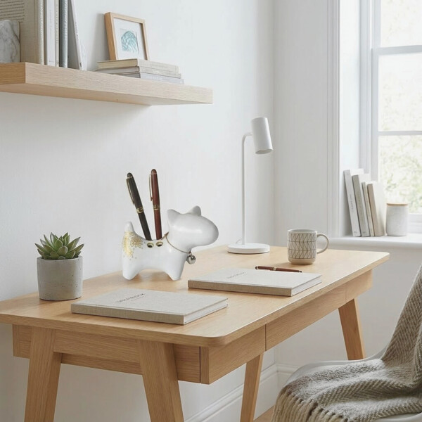 Organisera ditt skrivbord med den unika charmen hos vår handgjorda Bull Terrier-hundpennhållare. Omsorgsfullt tillverkad i Thailand av återvunna pappers kärnor, är denna förtjusande hunden prydd med handmålade thailändska motiv, inspirerade av traditionell konsten. Den fungerar både som en iögonfallande dekorativ detalj och en praktisk lösning för att hålla dina pennor och blyertspennor på plats. Finns i flera färger. Storlek: Ungefär 10 x 22 x 16 cm. Material: Papier-maché av återvunnet papper, för att främja hållbar inredning. Handmålad med detaljerade thailändska mönster, vilket gör varje hållare till ett unikt konstverk. Den bedårande Bull Terrier-hund formen ger en lekfull men ändå elegant touch till ditt skrivbord, hylla eller vilken yta som helst. Lätt att rengöra med en fuktig trasa.