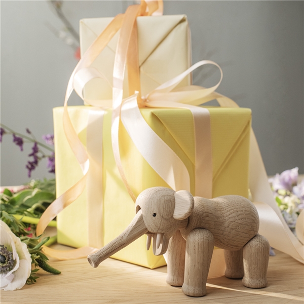 Redan 1953 blev Kay Bojesen elefanten en del i Kay Bojesens djurfamilj. Denna minielefanten är tillverkad i ek och har både rörliga ben och rörlig snabel. Precis som alla andra träfigurerna från Kay Bojesen passar den till alla åldrar och i alla hem. En klassiker som följer genom hela livet. Perfekt dopgåva. Elefanten finns även i en större storlek.