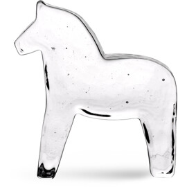 En stilren glasversion av den klassiska Dalahäst från Kosta Boda. Denna större häst är handgjuten i klarglas vid Kosta Glasbruk och kombinerar svensk tradition med modern design. Glasets klara yta fångar ljuset vackert och gör hästen till en dekorativ detalj i hemmet.