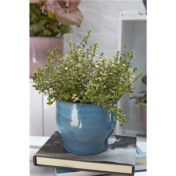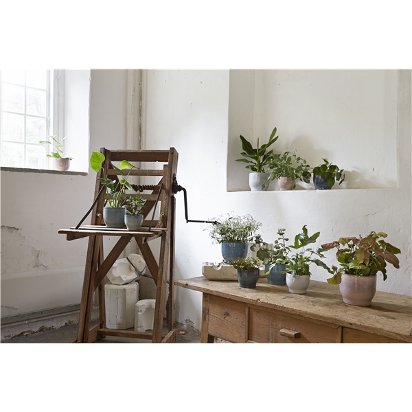 Kruka från Knabstrup Keramik vars modell skapades redan på 1920-talet. Blomkrukan finns i flera färger. Tillverkas av högeldad terrakotta med en reaktiv glasyr som ger de vackra unika färgerna på krukan. Färg och mönster kan skilja sig något från bilderna och från produkt till produkt.