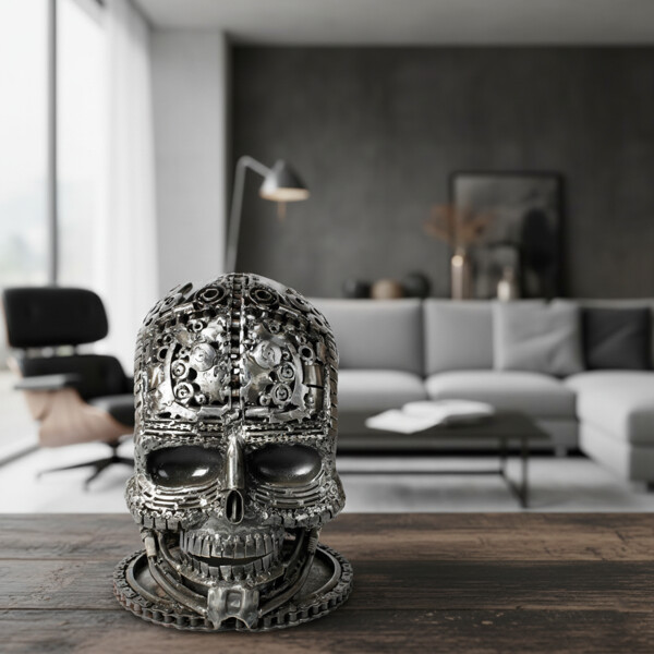 Utforska vår Iron Skull Skulptur, en iögonfallande, 100 % handgjord konstverk tillverkat av återvunnen metall. Detta unika huvud förvandlar kasserade material till ett djärvt uttalande, skickligt skapat av industriella komponenter. Perfekt för moderna miljöer, den representerar miljömedvetenhet och kreativitet, vilket gör den till mer än bara dekoration.