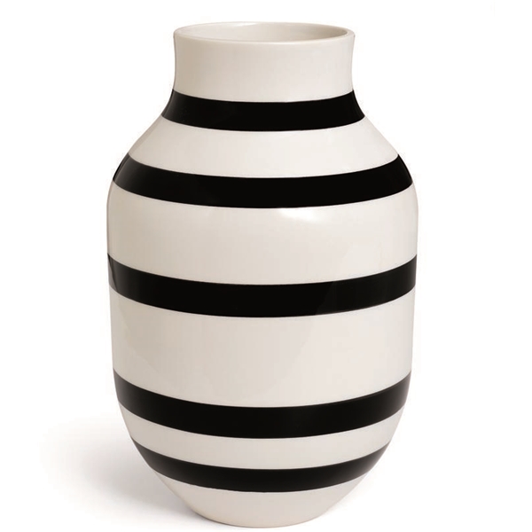 En klassisk och karaktäristisk vas från Kähler som är tillräckligt stor för att innehålla långa och sofistikerade blommor i en blandad bukett. De handmålade ränderna som prydligt dekorerar den ikoniska Omaggio-vasen är ett snyggt och mycket modernt tillskott till det skandinaviska hemmet. Låt vasen dekorera matbordet eller vardagsrumsfönstret med eller utan förtrollande blommor.