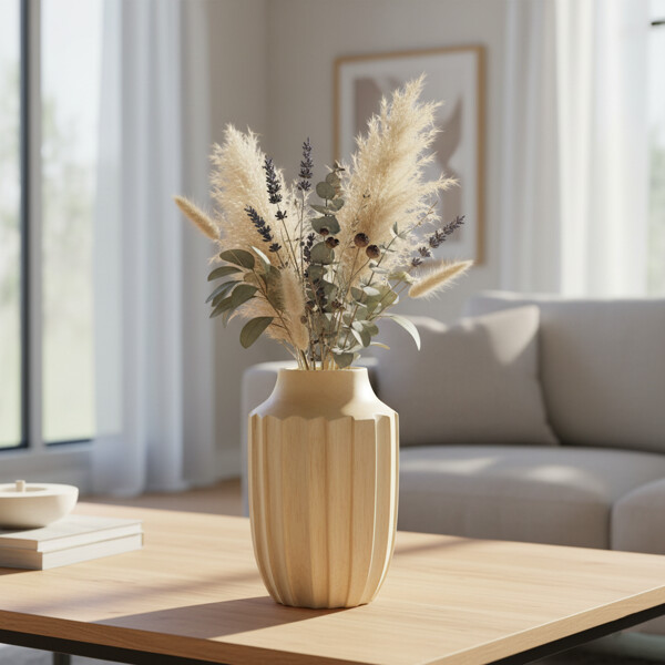 Storlek: Cirka 12 x 12 x 20 cm Storlek: Cirka 12 x 12 x 24 cm Material: Tillverkad av 100 % naturligt trä. Handgjord Kvalitet: Varje vas är helt handgjord och går igenom en intrikat process av slipning, formning, och målning, vilket garanterar dess unika karaktär och överlägsna kvalitet. Miljövänlig: En dekorationsartikel från Thailand helt naturlig.Unik Design: Har ett fängslande räfflad struktur, idealisk för att tillföra djup och organisk elegans till din inredning.