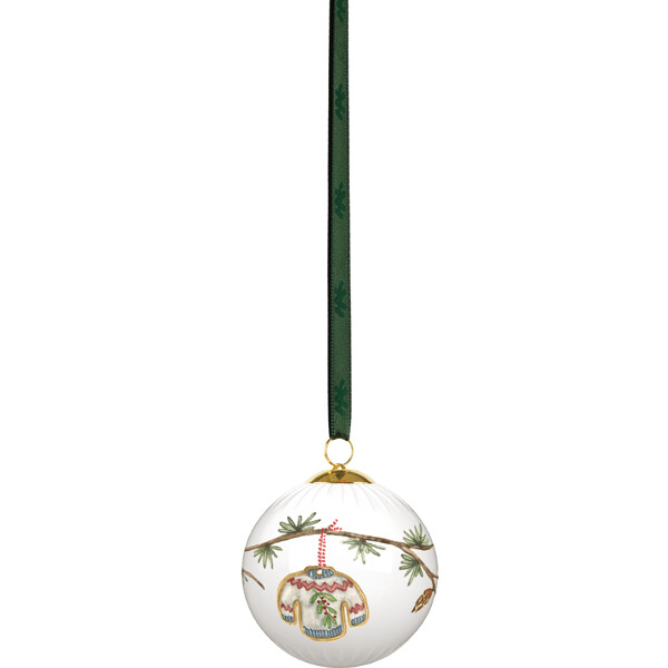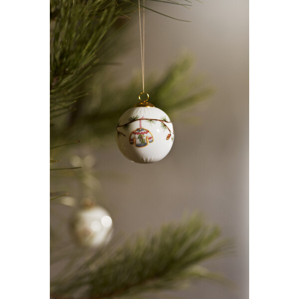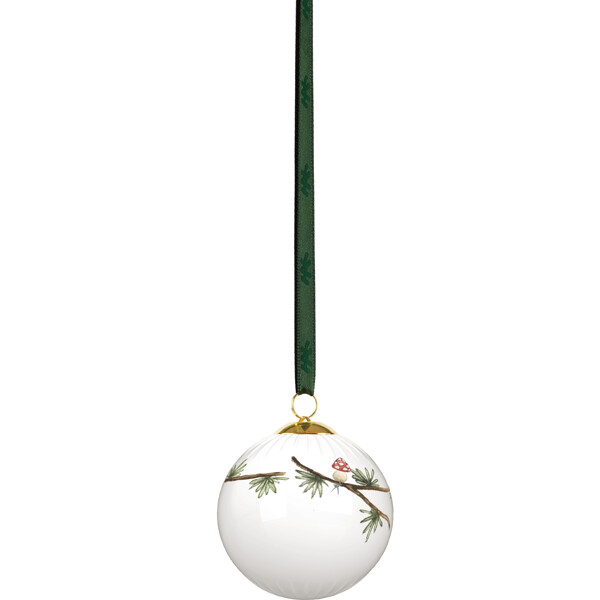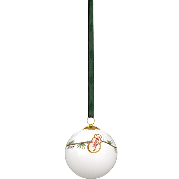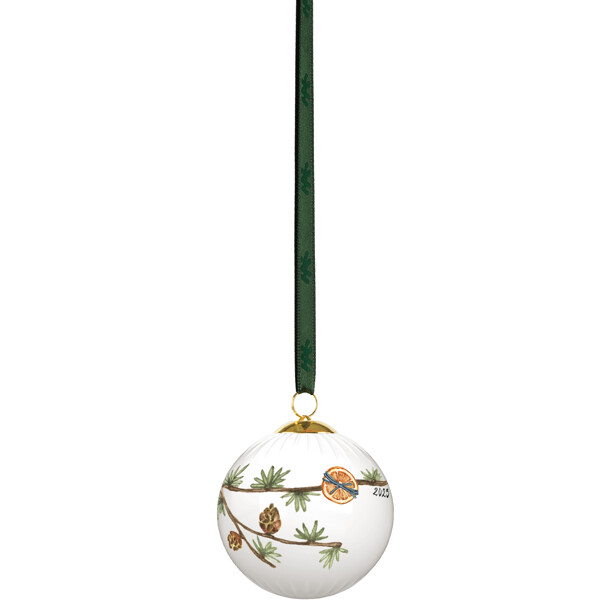 Kähler hyllar julens speciella nostalgi och traditioner och bjuder med det både klassiska och moderna julporslinet Hammershøi Christmas in oss alla i julens magiska och fridfulla värld. Även Hammershøi Christmas Kula 2025 är formad av tradition som en hyllning till den autentiska, nostalgiska julen. Julkulan har en diameter på 6 cm och är dekorerad med en cedergren med lärkkottar, smyckad med de finaste dekorationerna: en skiva apelsin med blått band, en nätt liten svamp och två hembakade pepparkaksfigurer formade som en snögubbe och en jultröja, som för in autenticitet och värme i julen. Och naturligtvis är den också dekorerad med årtalet 2025. Kanske har du redan en eller flera Hammershøi Christmas Kulor från tidigare år? Låt dem tillsammans skapa julstämning i fönstret eller häng dem på grenar placerade i en vas. De charmiga julmotiven har under årens lopp skapats av konstnären Rikke Jacobsen, som varje år ger det klassiska Hammershøi-porslinet, designat av Hans-Christian Bauer, ytterligare en touch av julmagi. Idag rymmer Hammershøi Christmas-serien tillräckligt många delar för en komplett dukning till alla decembers måltider, från brunch och lunch till julmiddag. Julkulan levereras med ett dekorativt grönt band så att den enkelt och stilfullt kan hängas upp.