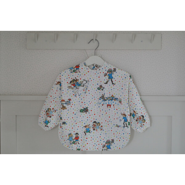 Praktisk haklapp med ärm som kan användas både vid mat och lek från Rätt Starts kollektion Pippi Långstrump Födelsedag.