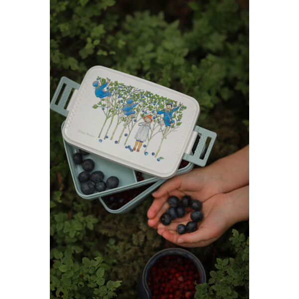 Praktisk lunchlåda med motiv från Elsa Beskows ljuvliga sagor som snabbt blir en favorit hemma hos både stora och små! Lådan har en mellanbricka med två fack samt ett bra lock med knäppen, man kan dessutom välja om man vill ha med avdelaren eller inte, locket går att spänna i två olika lägen.
