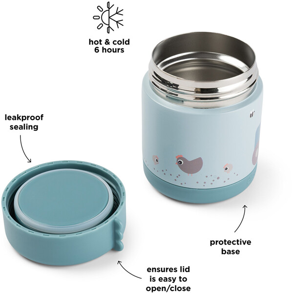 Oavsett om det är varm gröt till förskolemorgonen eller sval fruktsallad till en solig parkpicknick, är denna isolerade matburk gjord för att hålla dina smås favoriter varma eller kalla i upp till sex timmar. Burken är designad med hektiska dagar och små händer i åtanke och är enkel att öppna och stänga självständigt, vilket hjälper småbarn att bygga upp självförtroendet vid måltiderna. En säker silikonförsegling håller burken lufttät och läckagesäker, så att du kan packa den i vilken väska som helst utan att behöva oroa dig.