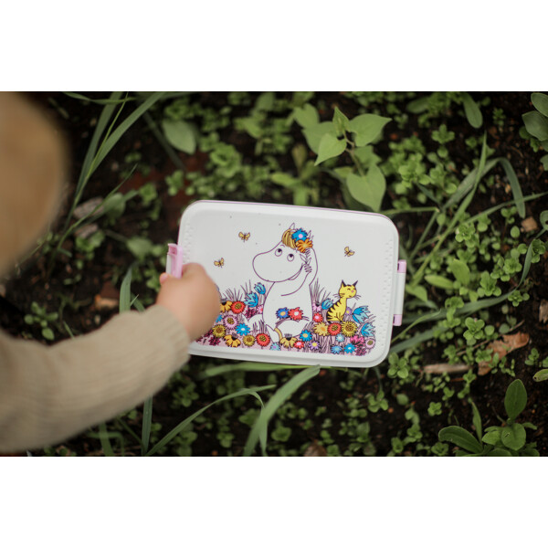 Författarinnan och konstnären Tove Jansson älskade havet och naturen. Nästan alla hennes berättelser och illustrationer utspelar sig i naturen. Lunchlådornas motiv skildrar Muminfamiljens äventyr.