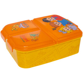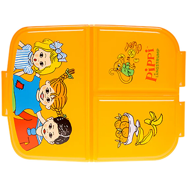 En fin matlåda med Pippi och hennes vänner. Matlådan är gjord av plast och har tre olika fack som enkelt stängs med lås på sidorna. Perfekt för att packa mat och godsaker under bilresan eller till skolan. Fri från BPA.