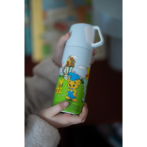 En underbar termos i rostfritt stål med Bamse-motiv.