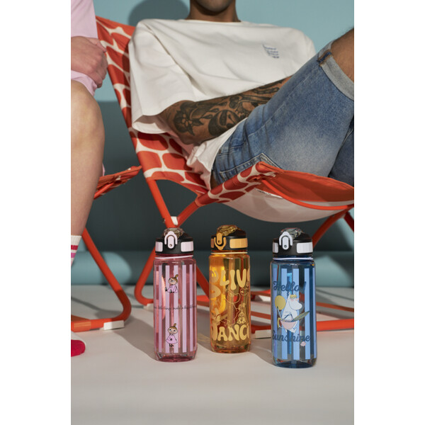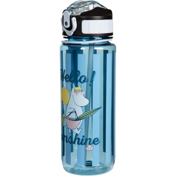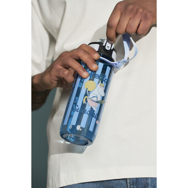 Flaskan har bärrem, tätt lock och ett smidigt sugrör som fälls in under ett litet lock, med en behagligt mjuk drickdel. Den är bekväm att dricka ur, lätt att rengöra och enkel att ta med sig. På flaskan finns en bild av Snorkfröken och en Hello Sunshine-text.