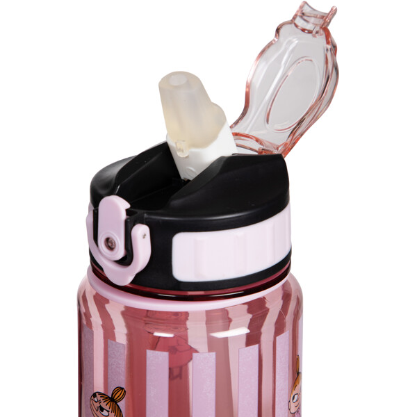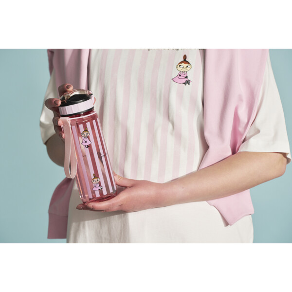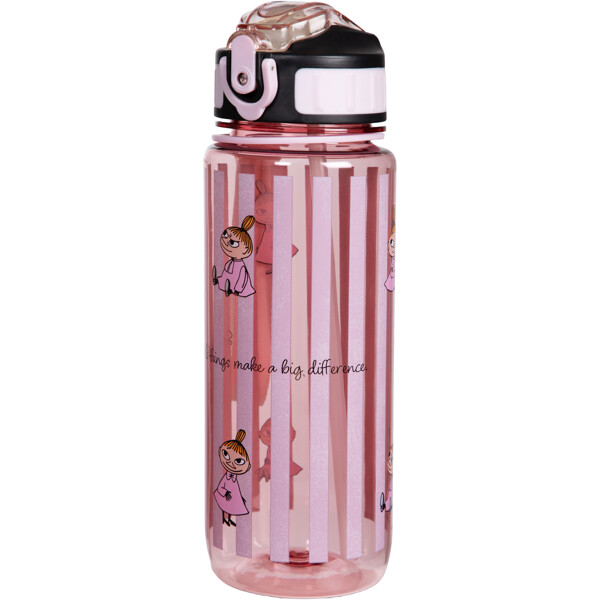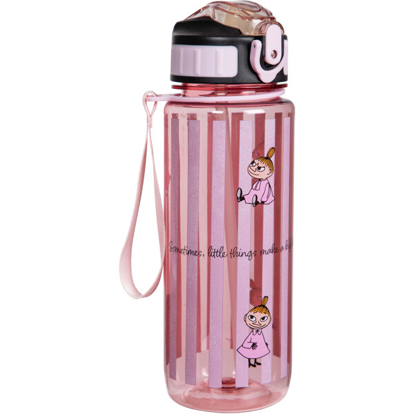Flaskan har bärrem, tätt lock och ett smidigt sugrör som fälls in under ett litet lock, med en behagligt mjuk drickdel. Den är bekväm att dricka ur, lätt att rengöra och enkel att ta med sig. På flaskan finns en bild av Lilla My och ett roligt citat: 'Sometimes, little things make a big difference'.