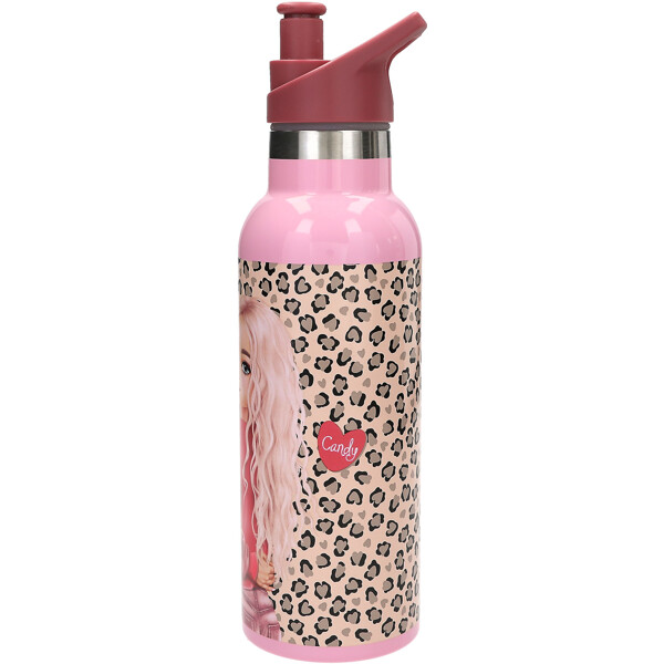 Denna fina rosa dricksflaska från TOPModel LEOHEART-serien har ett motiv på Fergie och Candy samt ett trendigt leopardtryck runtom.
