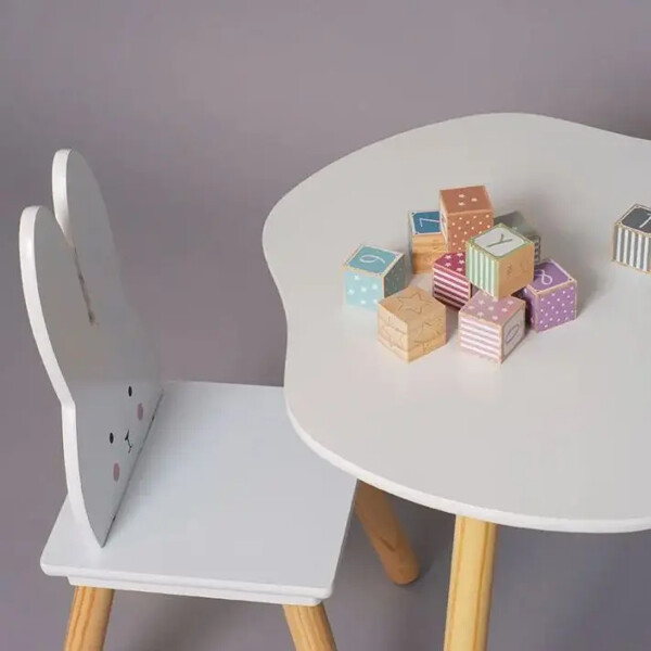 JaBaDaBaDo Stol Bunny är en praktisk och fin stol till barnrummet. Stolens ryggstöd är en söt kanin med kaninöron som sticker upp. Stolen kan också användas som ett litet sidobord eller nattduksbord att lägga sagoboken på. Stolen är tillverkad i trä och sitthöjden är 27 cm.
