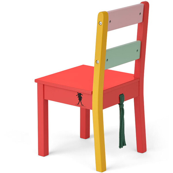 ”Var inte ängslig! Jag klarar mej alltid!” Pippis orädda attityd förvandlar ofta det oväntade till äventyr, och den här trästolen för in en del av den lekfulla andan i ditt hem.