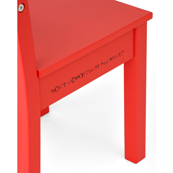 Stolen är tillverkad i FSC-certifierat trä och har på ena sidan av sitsen Pippis uppmuntrande ord tryckta, medan den andra sidan pryds av hennes välkända silhuett — en hyllning till hennes djärva och självständiga anda. Ryggstödet är dekorerat med ett lekfullt rutmönster, inspirerat av illustrationerna från Pippis värld.