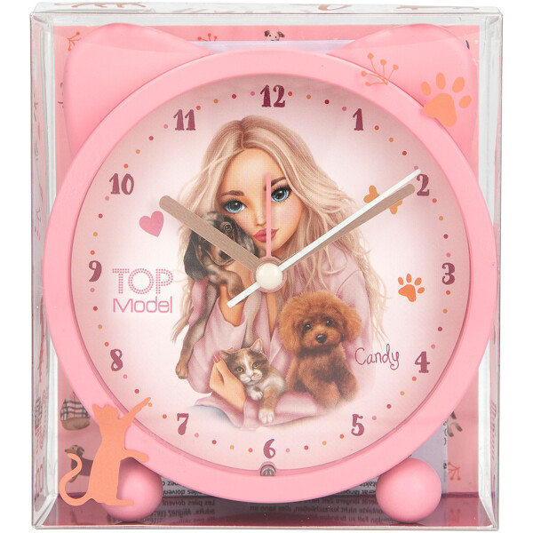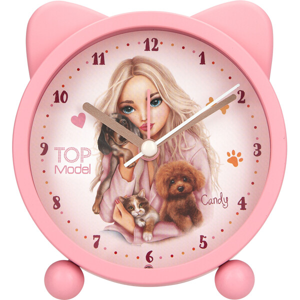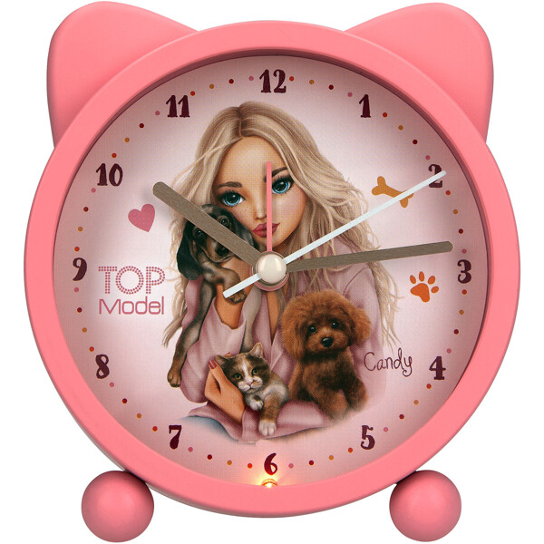 Fin väckarklocka från TOPModelserien FUR EVER FRIENDS i vacker rosa med söta öron och motiv avTOPModellen Candy med två hundar och en katt i famnen. Väckarklockanär tyst förutom när den ringer förstås och har dessutom en praktiskljusfunktion.