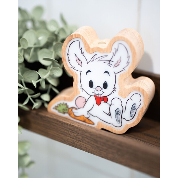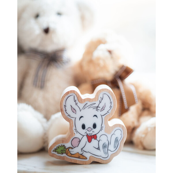 En trygg nattlampa med Bamse som lyser med varmt ljus i tre lägen. Laddningsbar och fin som inredning – en snäll vän som vakar i mörkret.