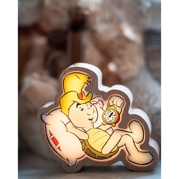 En trygg nattlampa med Bamse som lyser med varmt ljus i tre lägen. Laddningsbar och fin som inredning – en snäll vän som vakar i mörkret.
