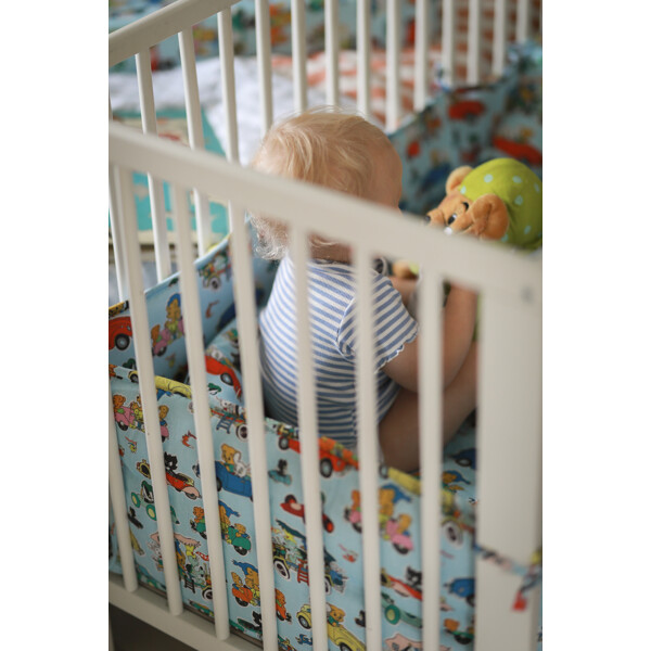 Gör sovplatsen för ditt barn till en trygg och mysig plats med ett spjälskydd med Bamsemotiv. Skyddet knyts enkelt runt sängens spjälor.
