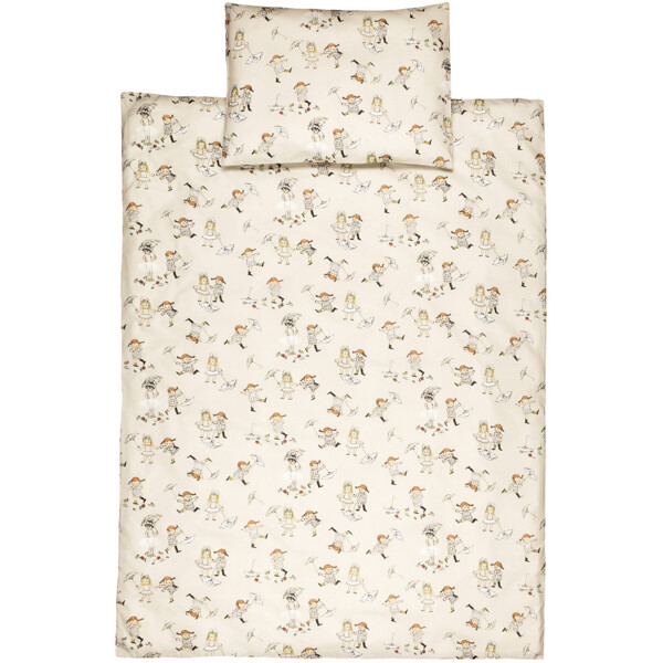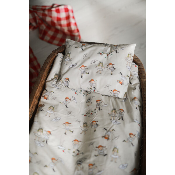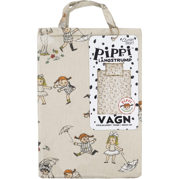 Påslakan och örngott med motiv från Pippi Långstrump. Tillverkat i bomull.