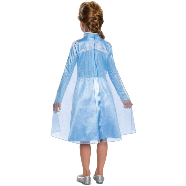 Disney Frozen kostym med en blå glänsande Elsa-klänning. Den har långa ärmar, cape och fina detaljer. Perfekt för timmar av fantasifull lek.