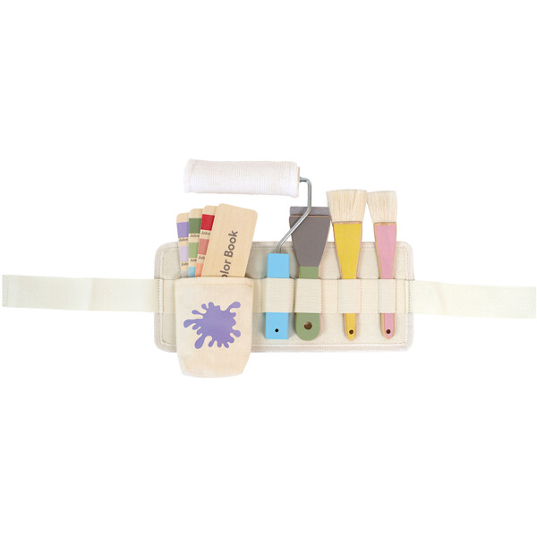 Det här bältet är utrustat med allt som behövs för en inspirerande konstsession – inklusive penslar, en färgroller, en spatel och en färgkarta. Allt är smart organiserat i det praktiska bältet, vilket gör att barn enkelt kan bära med sig sina konstverktyg och börja måla när inspirationen slår till.
