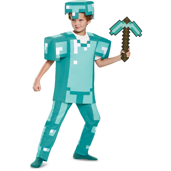 Tillbehören är tillverkade av lätt skum, vilket gör dem enkla att bära och bekväma att använda – perfekt för Halloween, maskerad eller egna äventyr hemma. Hackan är cirka 40 cm lång och svärdet cirka 51 cm, vilket gör dem både imponerande och roliga för alla Minecraft-fans.
