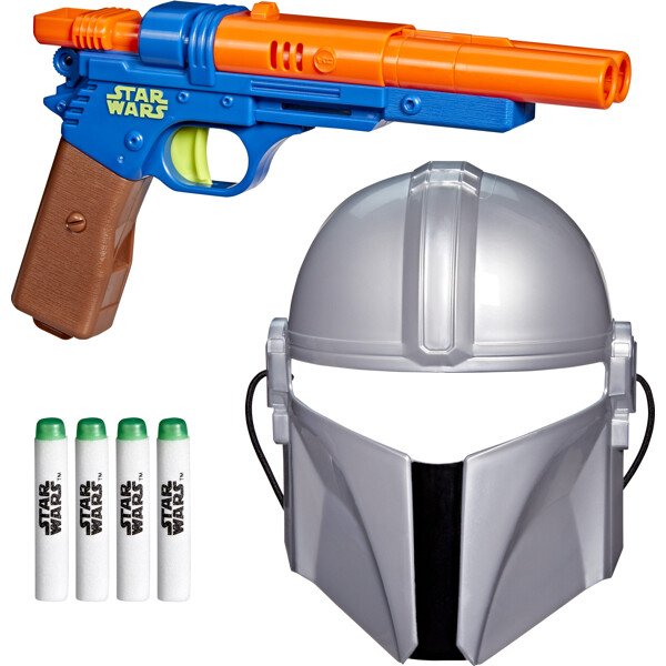 Det här STAR WARS-setet innehåller en Mandalorian-mask och en blaster, vilket innebär att barn kan börja sina Mandalorian-äventyr direkt.