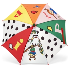 Pippi Långstrump Paraply Rödgult Pippi Långstrump Färgglatt paraply med Pippi Långstrump som lyser upp en tråkig regndag!
