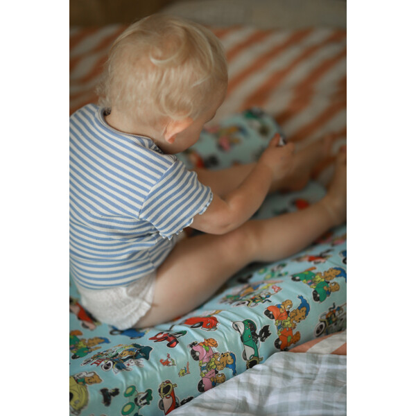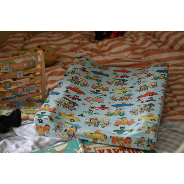 Med en polyeterfyllning och upphöjda kanter ligger barnet mjukt och säkert. Skötbädden har en vattenavvisande yta som gör att den enkelt kan torkas av. Använd gärna ett extra bäddskydd så håller sig produkten fräsch längre.