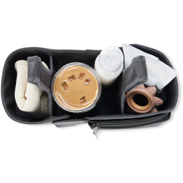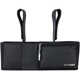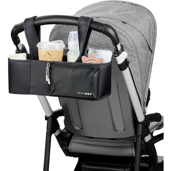 Skip Hop's Ultimate Stroller Organizer har ett dedikerat mittutskärning som säkert håller stora muggar och flikar som omvandlar mugghållaren till ett extra förvaringsfack.
