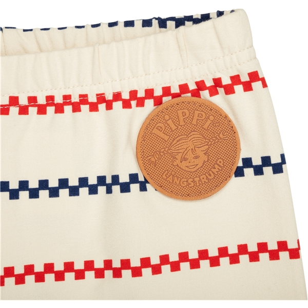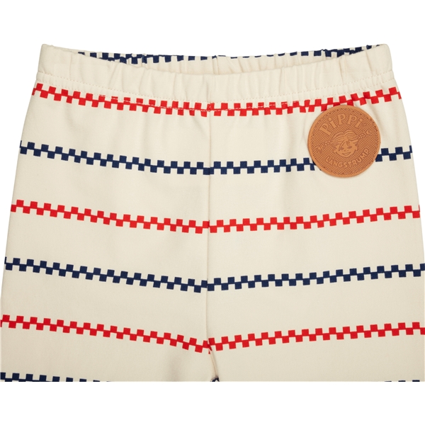 Sköna, benvita leggings i sweatshirtkvalitet med mjuk, borstad insida. Leggingsen är benvita med Pippi Långstrump-rutränder i rött och blått. I midjan har de infälld resår och i övre kanten ett runt Pippi Långstrump-märke i läderimitation. Ekologisk bomullsblandning. Öko-tex.
