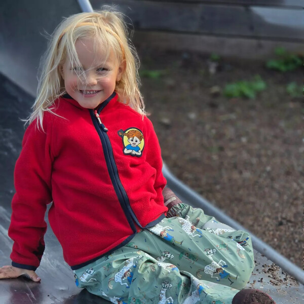 Den här mjuka och varma fleecejackan är perfekt för alla små äventyrare som vill ha lite extra Pippi-styrka med sig! På bröstet sitter en patch med Pippi-motiv, som påminner om att världen är full av bus och spännande upptåg.