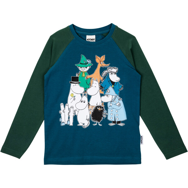 En mjuk och skön Mumin tröja för barn, i rak modell med lång raglanärm och rund halsringning. Produkten innehåller certifierad ekologisk bomull.