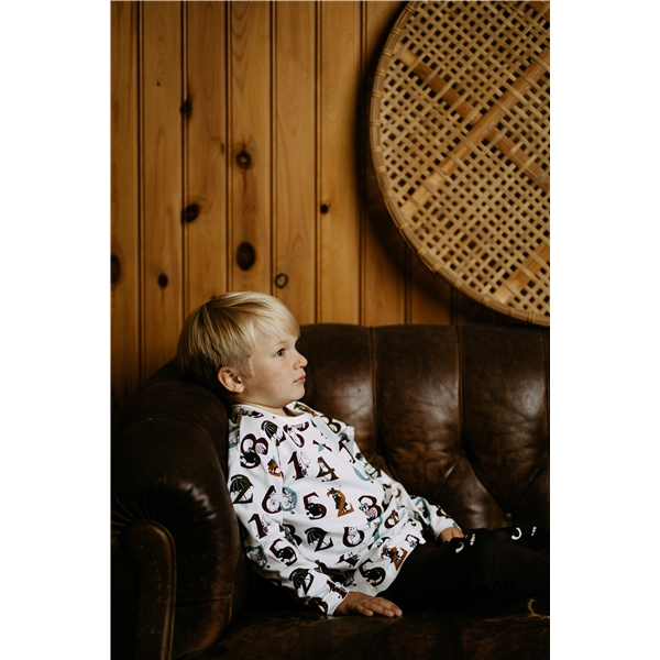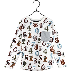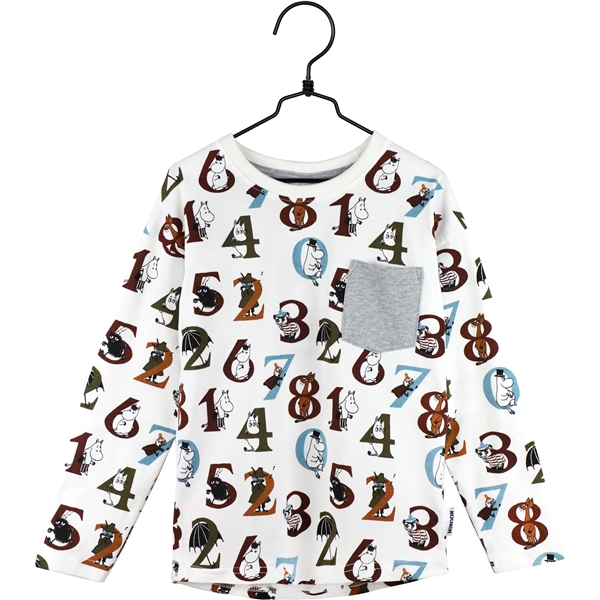 Mumin Numror Tröja Kitt är en härlig, långärmad tröja med ett lekfullt mönster av siffror och Muminkaraktärer. Tröjan har en grå bröstficka som en tuff detalj.