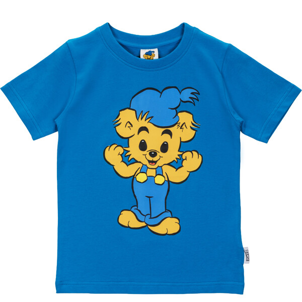 En mjuk och bekväm Bamse T-shirt för barn. I rak modell med korta ärmar, rund halsringning och roligt tryck framtill. Produkten innehåller certifierad ekologisk bomull.