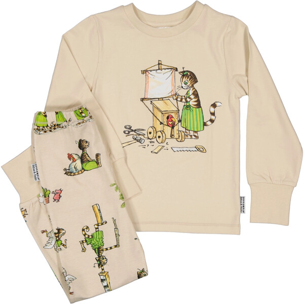 Pyjamas Pettson & Findus Beige är en tvådelad pyjamas i mjuk och skön ekologisk bomull.