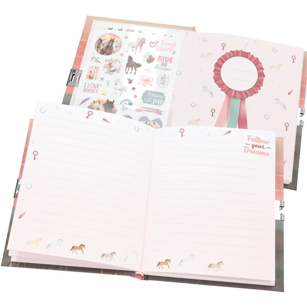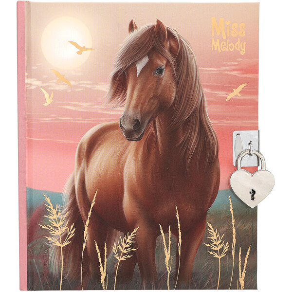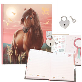 Alla dina tankar, hemligheter och personliga anteckningar förvaras säkert i denna fina Miss Melody dagbok med 192 linjerade sidor, hjärtformad lås och nyckel. Boken innehåller dessutom 2 ark med fina klistermärken som du kan dekorera sidorna med.