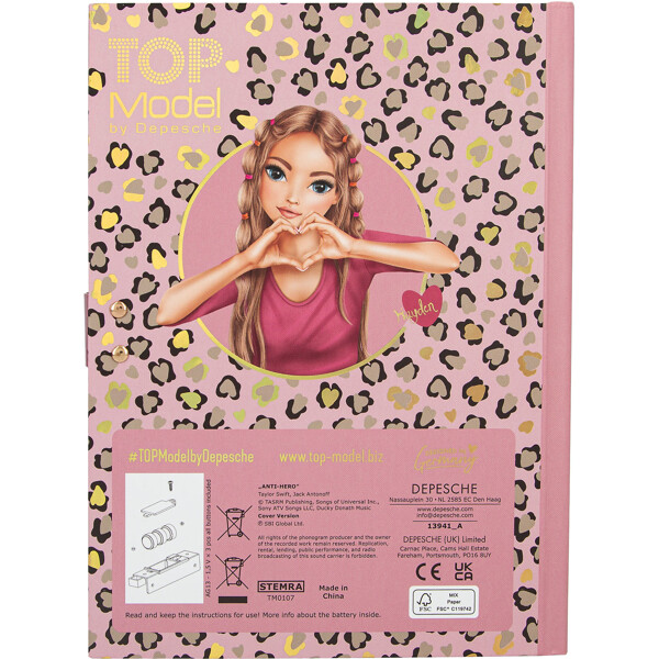 När du öppnar dagboken spelas hitlåten Anti-Hero i ca 20 sekunder. Dagboken är skyddad med en kod som du själv väljer, så att dina hemligheter är säkra från nyfikna ögon.